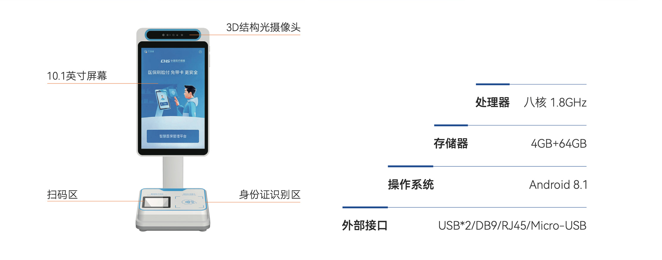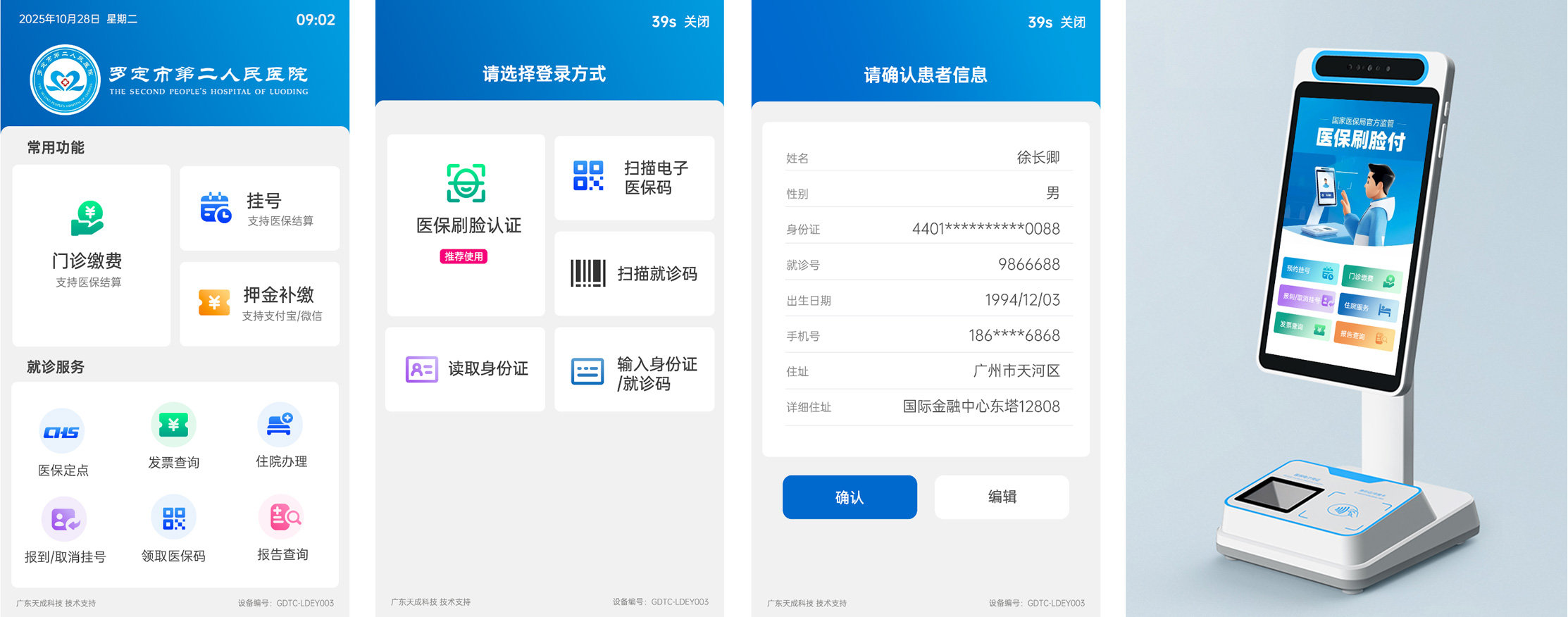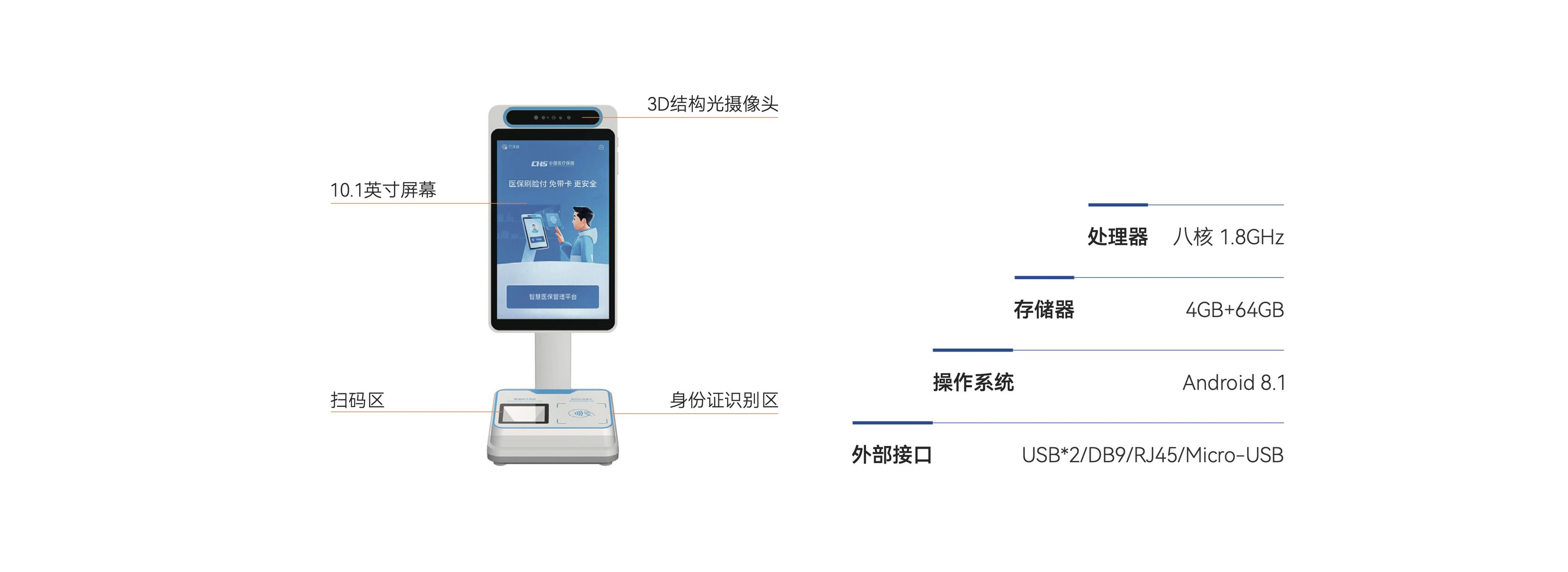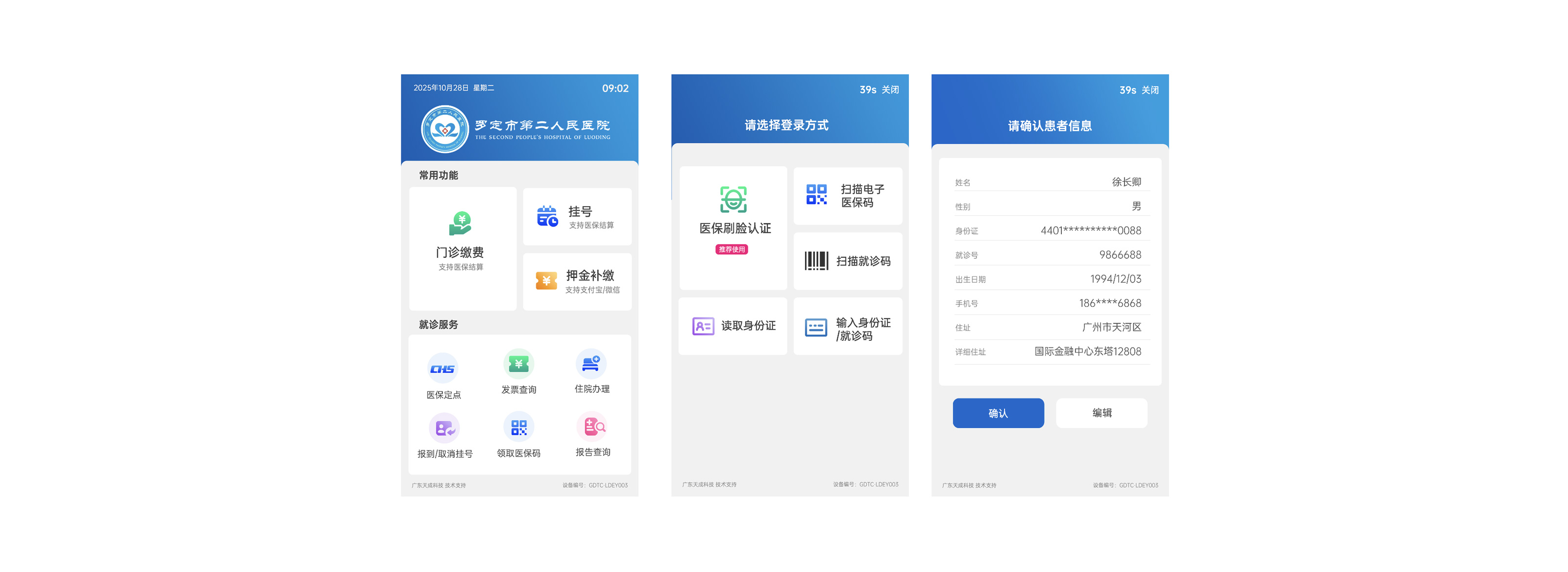 医保业务综合服务终端“医保刷脸支付” 就医功能。 患者无需携带社保卡、身份证或手机,刷脸就能完成普通门诊、 慢特病门诊及住院的医保结算。