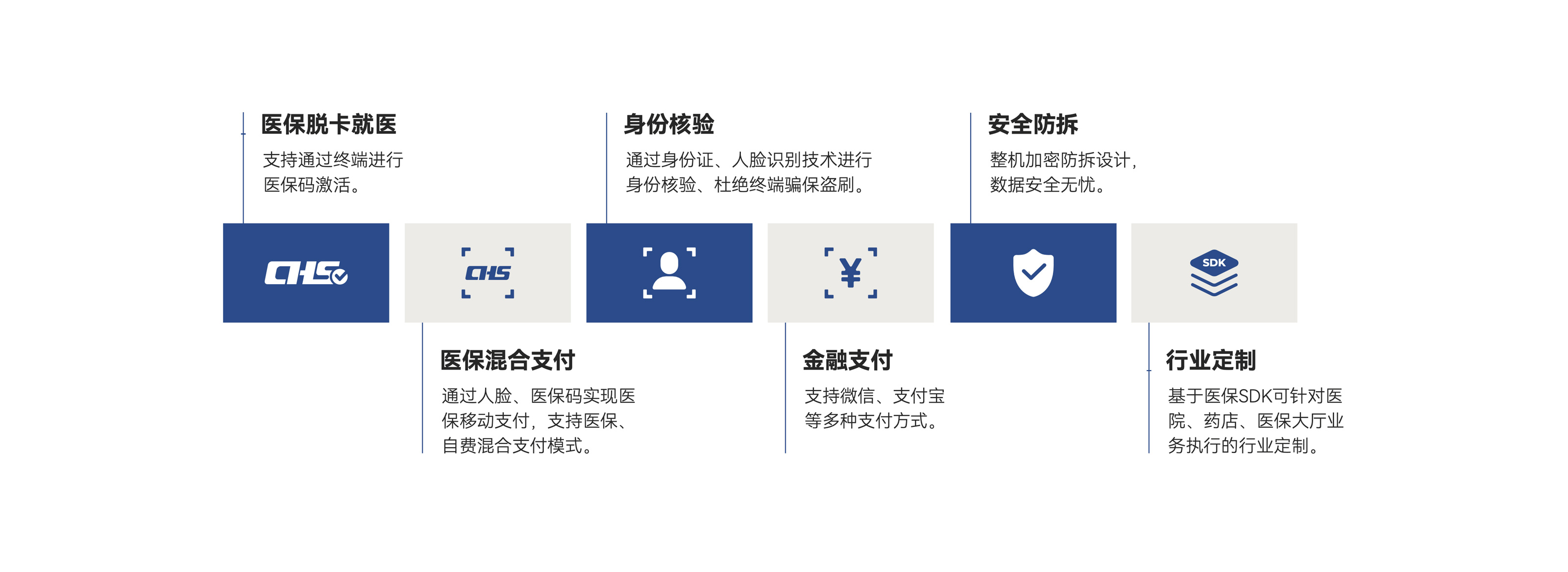 5、业务集成一机通办:结算、查询、备案等高频事项集成终端。